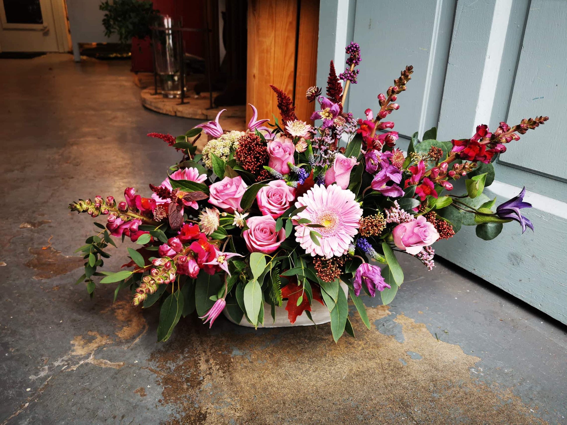 This Pink floral arrangement is a mesmerizing display that embodies the essence of natural beauty. It harmoniously combines a stunning variety of pink flowers, each shade and petal carefully selected to create a vibrant and elegant composition. The soft pastels and deeper pinks mingle together, evoking a sense of delicate harmony and timeless elegance.